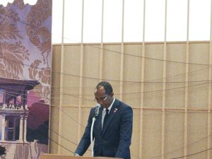 開会の基調講演は、コモロ連合経済産業投資経済大臣=ムストイファ・ハッサーニ・モハメッド閣下。長野県小諸市長=小泉俊博氏、コモロ国家投資促進庁CEO=ナジャテイ・ソイデイキ氏のお話が続きました。